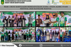 Sekayu, (MANSa Muba) – MAN 1 Musi Banyuasin kembali menorehkan prestasi membanggakan pada ajang STAIR Festival 2025 dengan meraih Juara 1 kategori Nasyid. Kompetisi ini diselenggarakan…