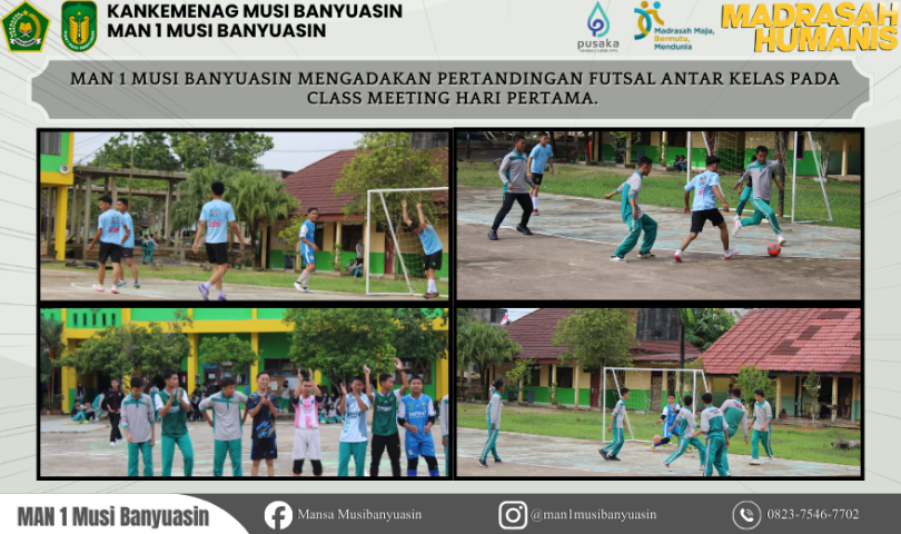 Pertandingan dimulai dengan kategori futsal putra antara kelas XII.H Vs XII.B selanjutnya XII.A Vs X.D, XII.E Vs X.G, XI.F vs X.A. Lapangan langsung dipadati oleh para pemain dan suporter yang memberi dukungan penuh kepada kelas masing-masing. Kegiatan Classmeeting di MAN 1 Musi Banyuasin berlangsung meriah dengan digelarnya lomba futsal antar kelas. Ajang ini menjadi salah satu kegiatan yang paling ditunggu oleh para peserta didik karena selain untuk mengisi waktu setelah pelaksanaan ujian semester, pertandingan futsal juga menjadi wahana bagi para peserta untuk menunjukkan kemampuan serta sportifitas dalam bertanding.
