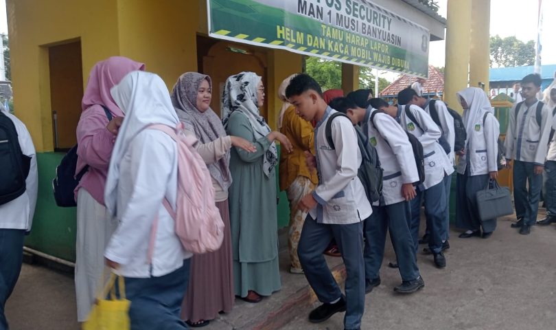 Sekayu, (MANSa Muba) – MAN 1 Musi Banyuasin melaksanakan kegiatan 5S (Senyum, Sapa, Salam, Sopan, Santun) Kegiatan ini di ikuti oleh para dewan guru, pegawai, beserta anggota POTRU. Kegiatan ini di laksanakan di gerbang depan madrasah untuk menyambut para peserta didik MAN 1 Musi Banyuasin yang baru datang. Kegiatan ini diberikan jadwal piket setiap organisasi minimal 4 orang Perorganisani. Jumat, (07/11/2025).