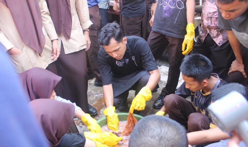 Sekayu, (MANSa Muba) – MAN 1 Musi Banyuasin Melaksanakan Kegiatan Project P5 Pelatihan Pembuatan Batik Gambo, kegiatan ini di koordinasi oleh Erdiansyah S.Pd.I.,M.Pd, selaku Waka Kurikulum, dan dibimbing langsung oleh para ahli pembuat kain Gambo. Kegiatan ini di ikuti oleh seluruh siswa kelas X, XI, dan XII serta para guru pendamping kegiatan Project P5 dalam Pelatihan Pembuatan Batik Gambo. Hari ini merupakan kegiatan pencelupan kain Gambo yang dilaksanakan di belakang Lab IPA MAN 1 Musi Banyuasin. Kamis, (18/09/2025).