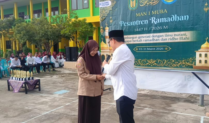Sekayu, (Mansa Muba) — MAN 1 Musi Banyuasin secara resmi menutup rangkaian kegiatan Pesantren Ramadhan 1447 H/2026 M. Kegiatan penutupan berlangsung dengan penuh khidmat dan meriah, diikuti oleh seluruh peserta didik, dewan guru, serta tenaga kependidikan MAN 1 Musi Banyuasin. Kamis,(12/03/2026).